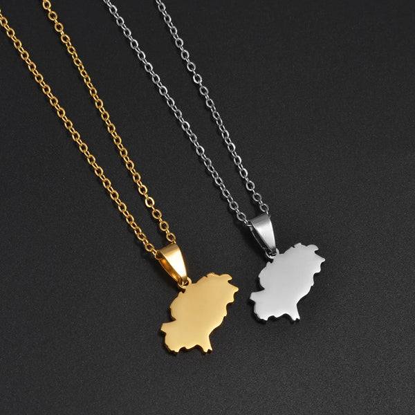 Anniyo 2.3cm Spain Ibiza Map Pendant Necklaces for Women Girl Iviza Ivica Stainless Steel Jewelry #012462