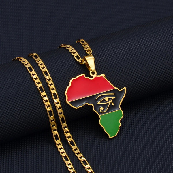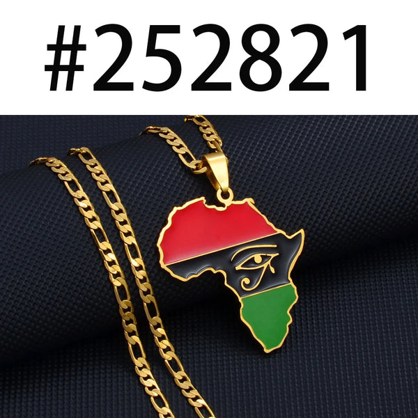 Anniyo Africa Map & Egypt Eye Ankh Gye Nyame Charm Pendant Necklace African Traditional Cultural Symbols Jewelry Unisex #252821
