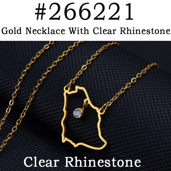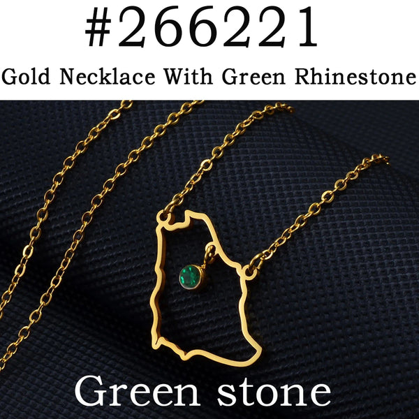 Anniyo Saudi Arabia Map With Green Stone Gold Color Charm Pendant Necklace Kingdom of Saudi Arabia Jewelry Women Girls #266221