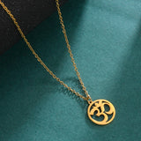Lucktune OM Yoga Chakra Pendant Necklace Stainless Steel Buddhism Hindu Amulet Choker Chain Necklace for Women Men Retro Jewelry
