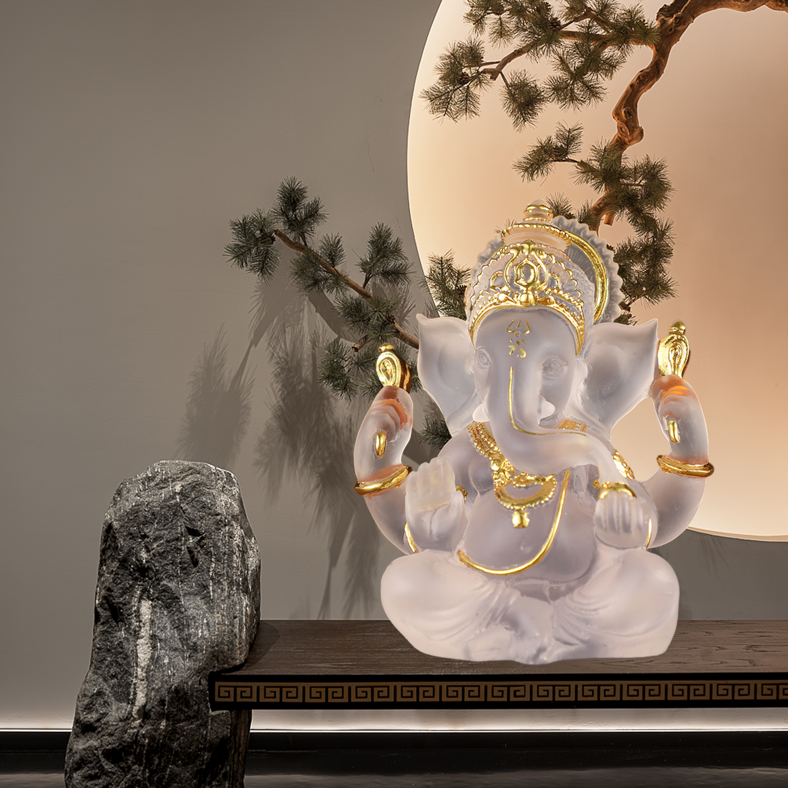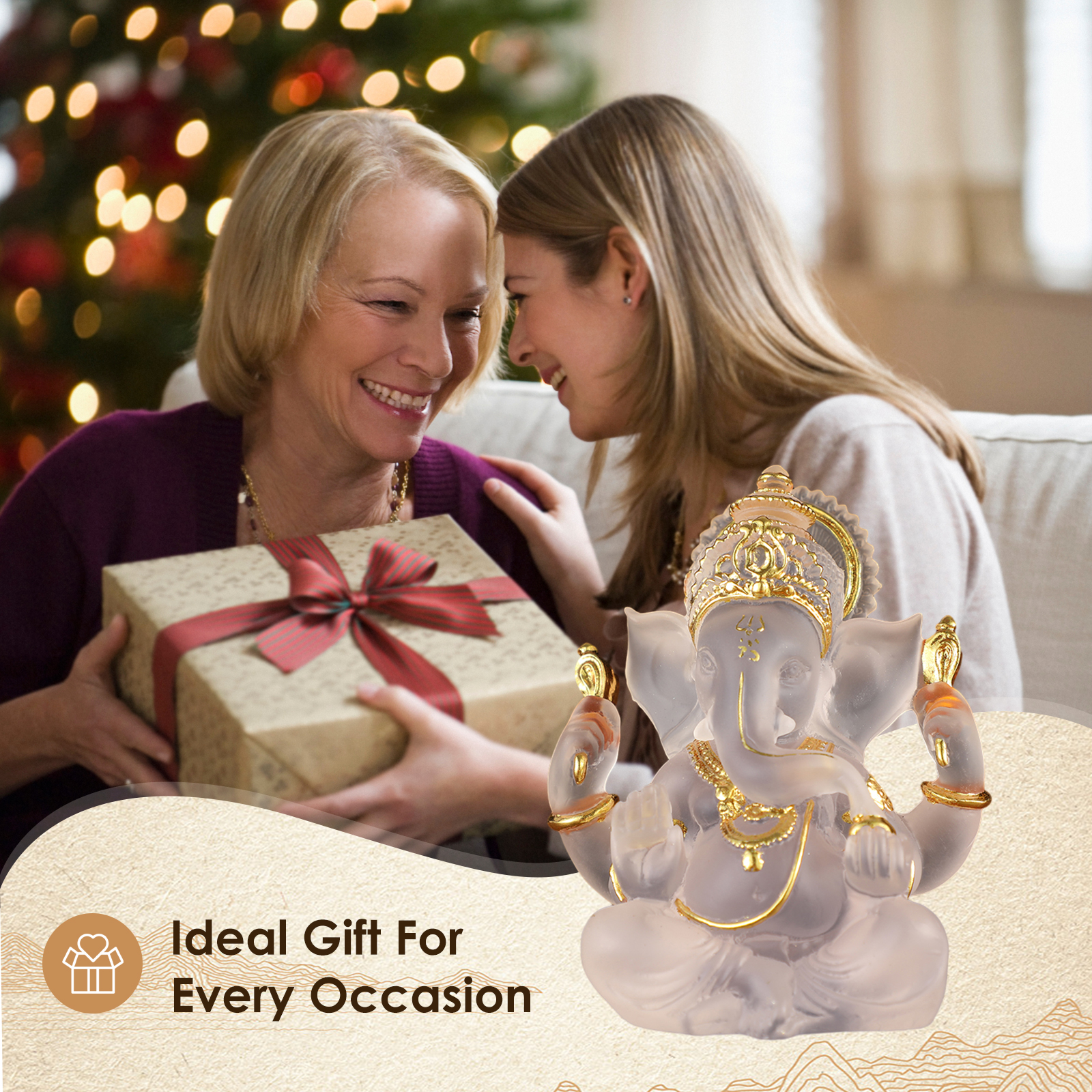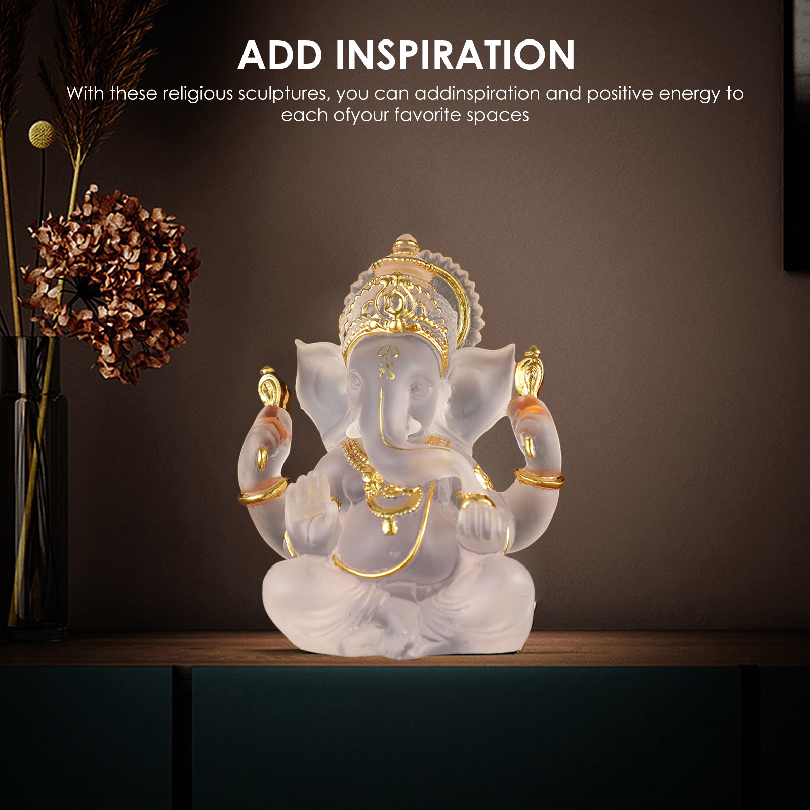 Lord Ganesha Statues Hindu Elephant God Sculpture,Resin Indian Ganesha Idol Buddha Figurine Good Luck Success Transparent Statue