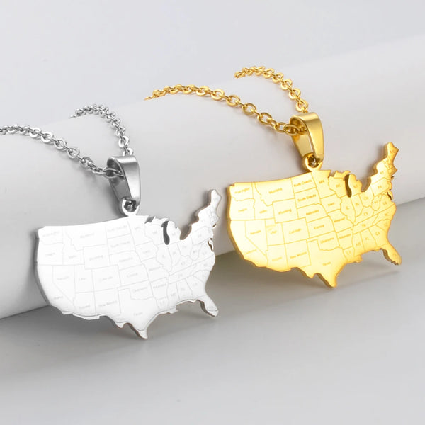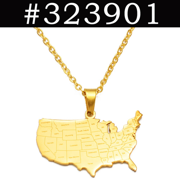 Anniyo American Map With State Name Pendant Necklaces for Women Men United States Map Jewelry USA #323901