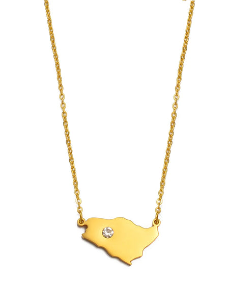 Anniyo Saudi Arabia Map With White Stone Charm Pendant Necklace Kingdom of Saudi Arabia Jewelry Women Girls #252521