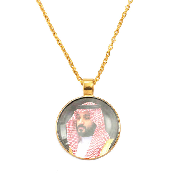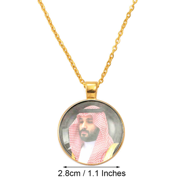 Anniyo Saudi King and Crown Prince Portrait Pendant Necklaces for Women Men Saudi Arabia Jewelry With Glass #D0042