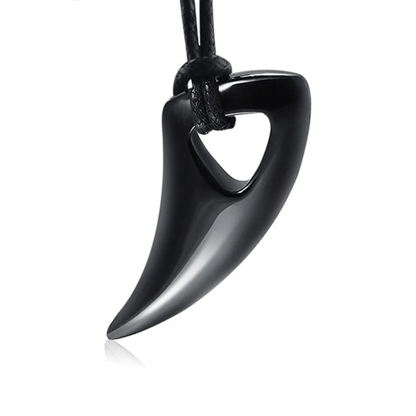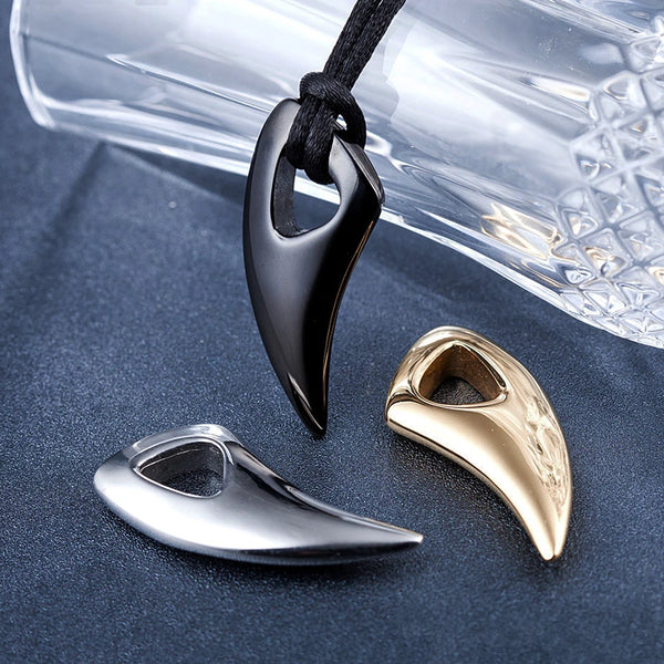 Name: High Polish Wolf Fang Tooth Spike Pendant Necklace For Men Stainless Steel Animal Tooth Leather Rope Necklaces Jewelry Wholesale
