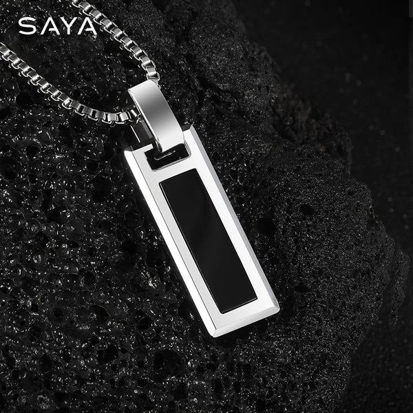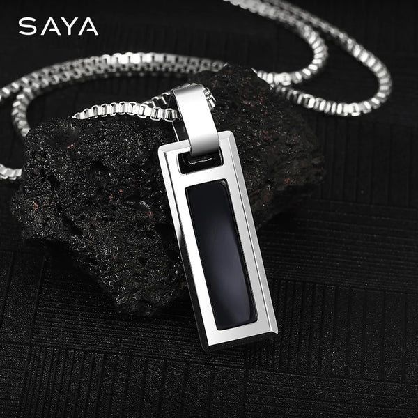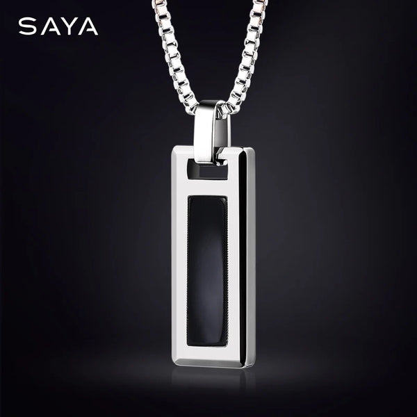 Necklace for Men Natural Turquoise Pendant High end Trendy Brand Tungsten Black Agate Fashion Versatile,Engraving