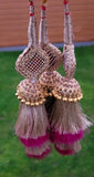 Handmade design Features - 3 Latkans with double Diamond style studded design  with stones and charms bells chabba (Umbreall) design - Pink and Gold Zari Latkans - Lahore Style Heavy Paranda - Just arrived
