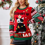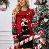 Winter 2025 Women's Christmas Knit Jumpers Long Sleeve O Neck Warm Thick Sweater Cartoon Print Soft Cute Pullover Xmas Look Top