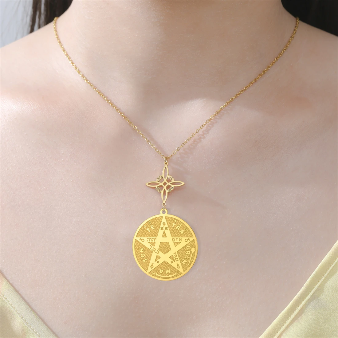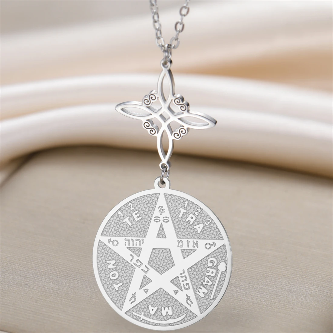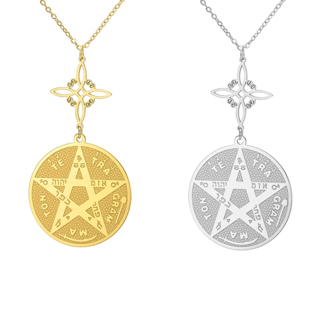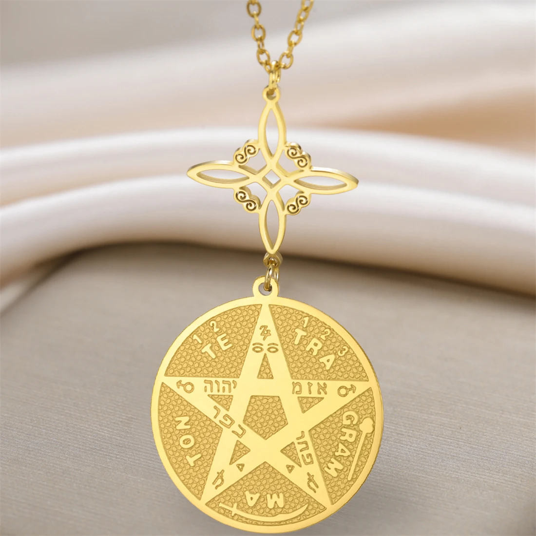 EUEAVAN God Name Tetragrammaton Pentacle Necklaces Stainless Steel Sacred Witch Knot Pendant Chain Solomon Seal Amulet Jewelry