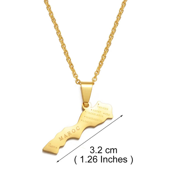 Anniyo 3.2cm Morocco Map Pendant Necklaces Africa Maroc Jewelry Stainless Steel Material #368121