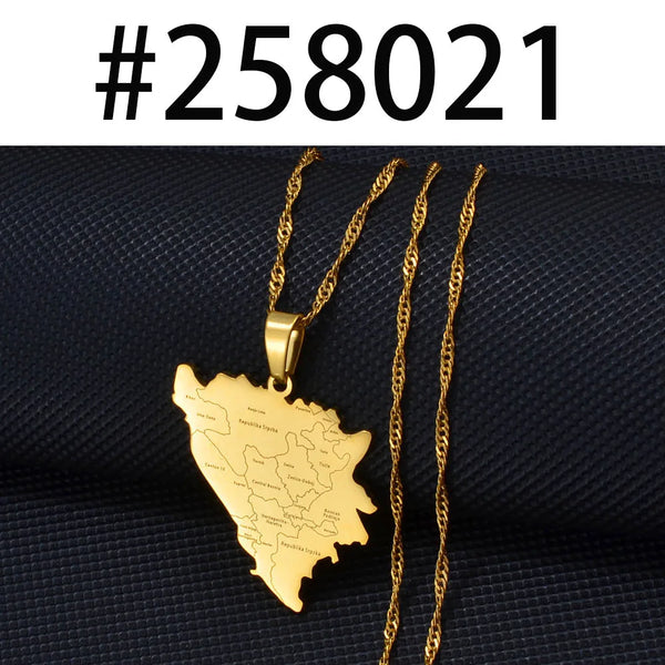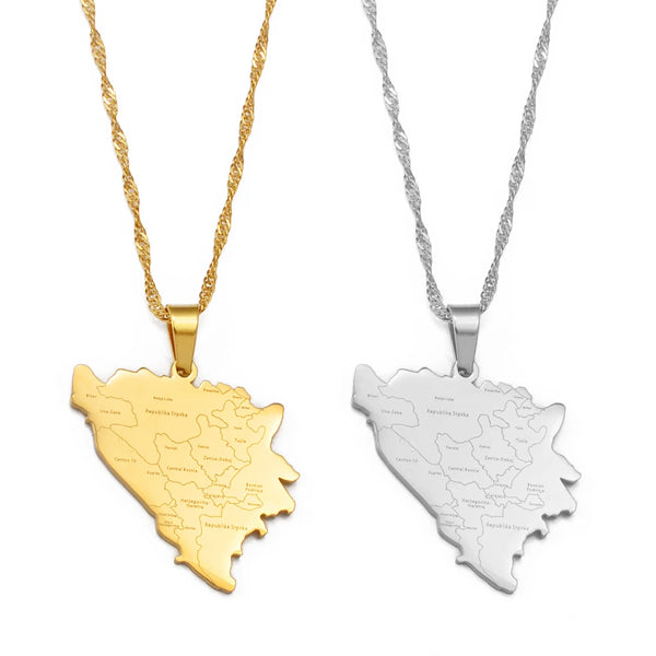 Anniyo Bosnia and Herzegovina Map With City Name Pendant Necklaces Bosna Hercegovina Jewelry #258021