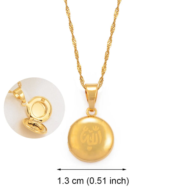 Anniyo DIY Keeping Photo Pendant Necklace Women Iran Jewelry,Gold Color Islam Arab Holy Bible Cross Allah Box #071502