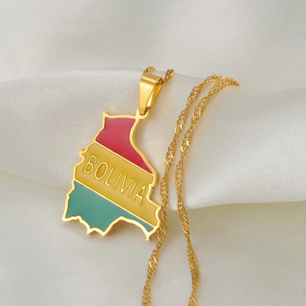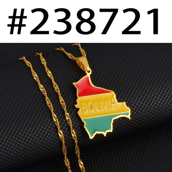 Anniyoc Bolivia Map Flag Pendant Necklaces for Women Girls Charms Bolivians Maps Jewelry Patriotic #238721
