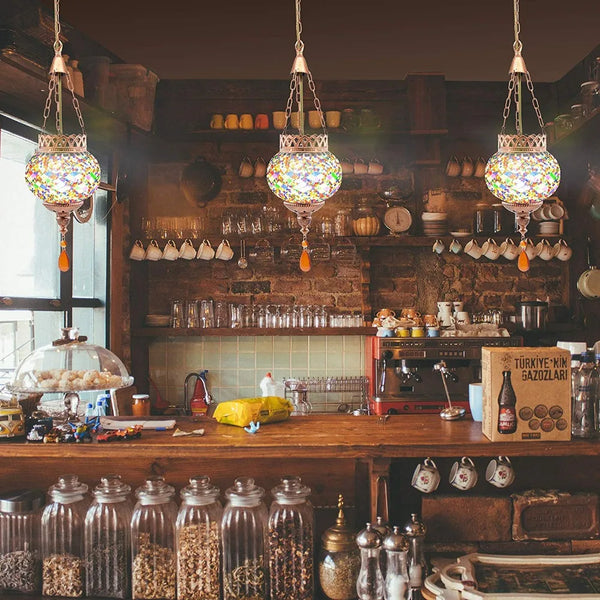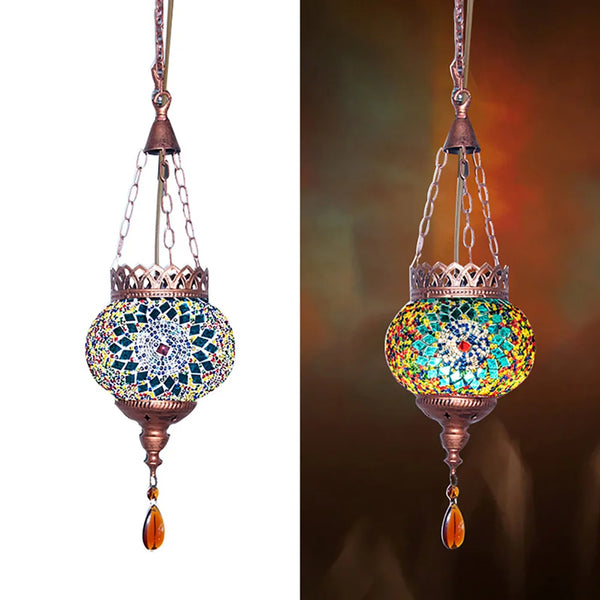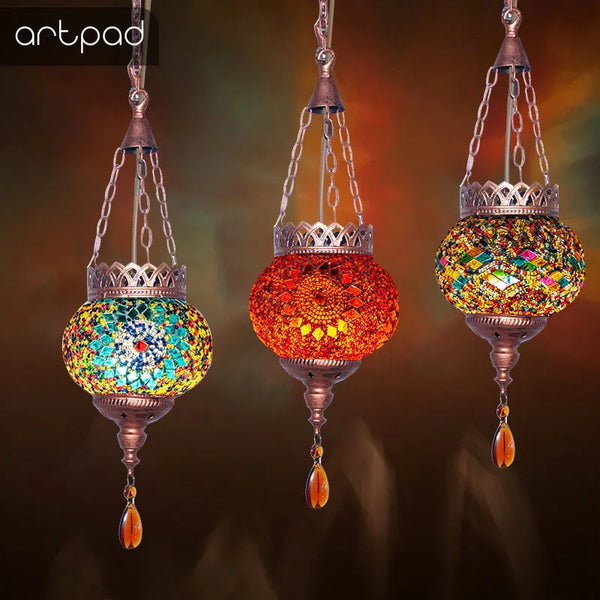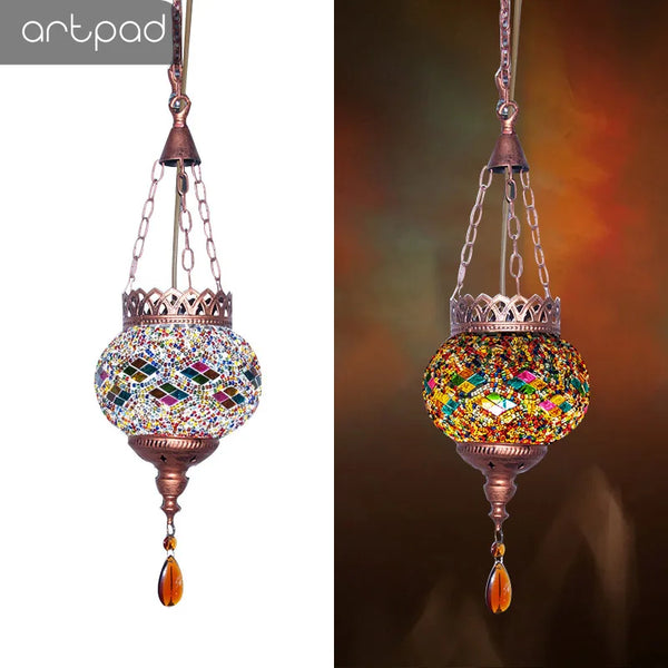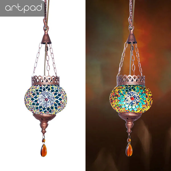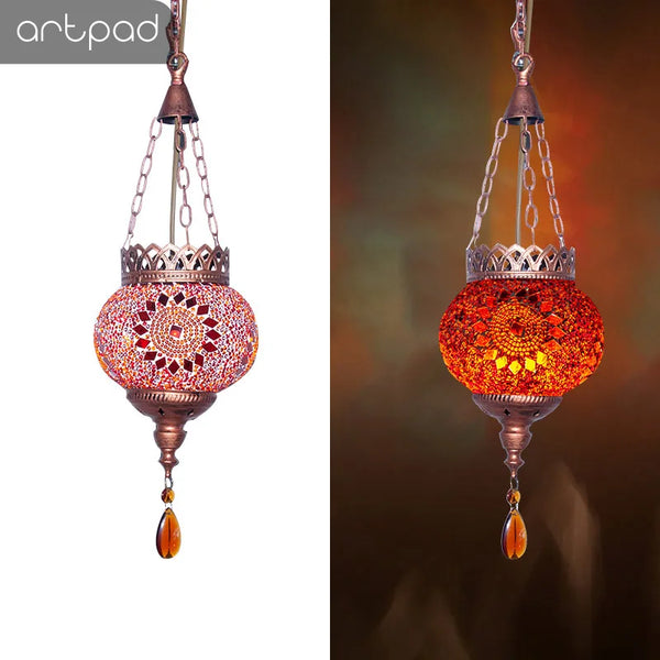 Artpad Mediterranean Style Turkish Moroccan Pendant Light Decoration Handmade Glass Shade Restaurant E27 Mosaic Hanging Lamp