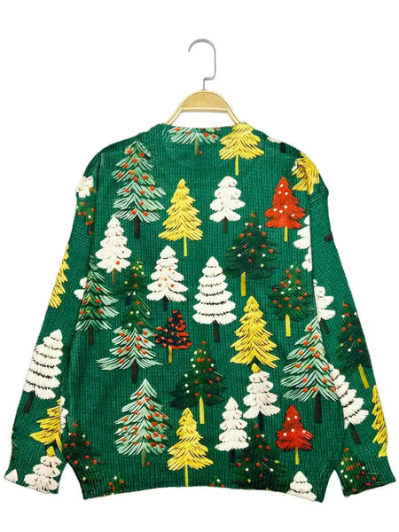 Autumn and winter new fashion casual pullover long-sleeve women's shirt Christmas tree pattern flat digital printing fashion wom