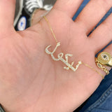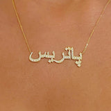 Dascusto Customized Name Necklace Women Arabic Name Necklace Crystal Arabic Pendant Personalized Islamic Nameplate Gold Chain Stainless Steel Jewelry For Women