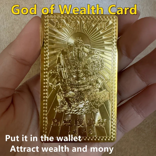 Elegant Golden Foil God of Wealth Card - Luxurious Amulet for Prosperity & Good Fortune, Ideal New Year Gift for Friends &Family