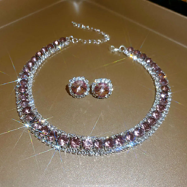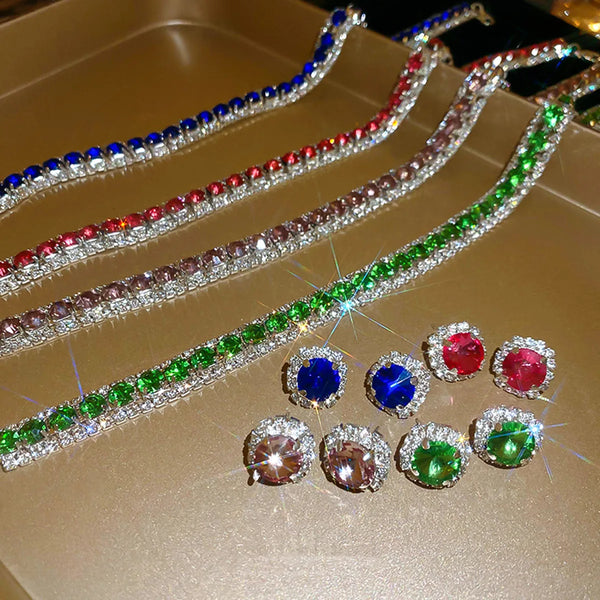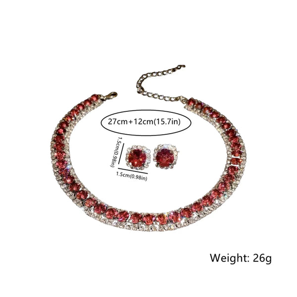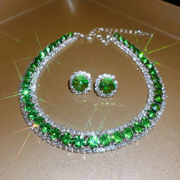 FYUAN Luxury Crystal Necklace Earrings Green Rose pink Blue Necklace for Women Weddings Party Jewelry Sets Accessories
