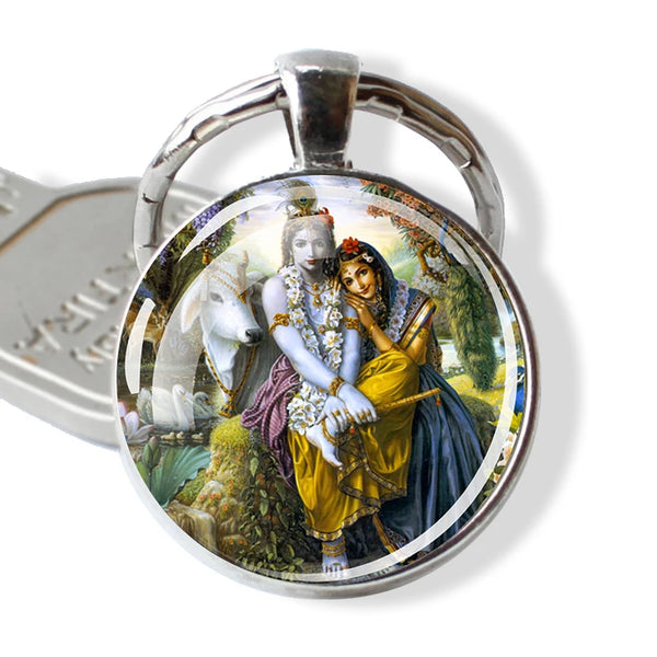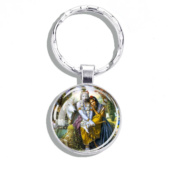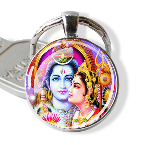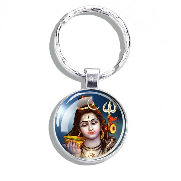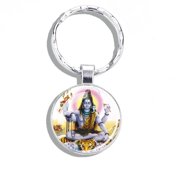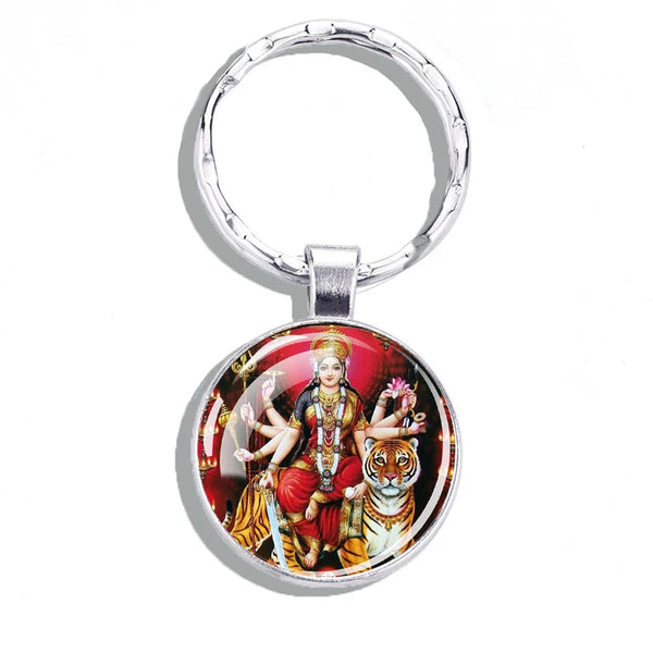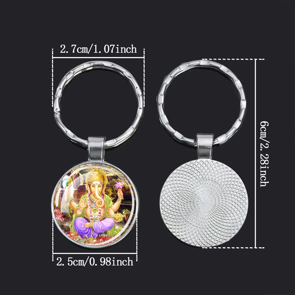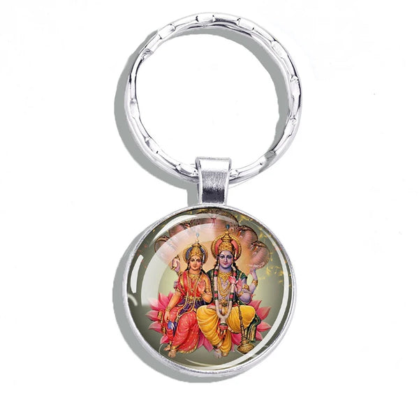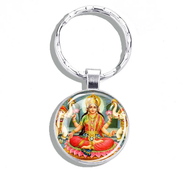 Hinduism Keychains Ganesha Vishnu Goddess of Kashmi Wealth Shiva Amulet Key Chain Glass Dome Keyring India Buddhism Jewelry Gift
