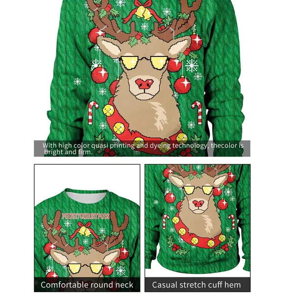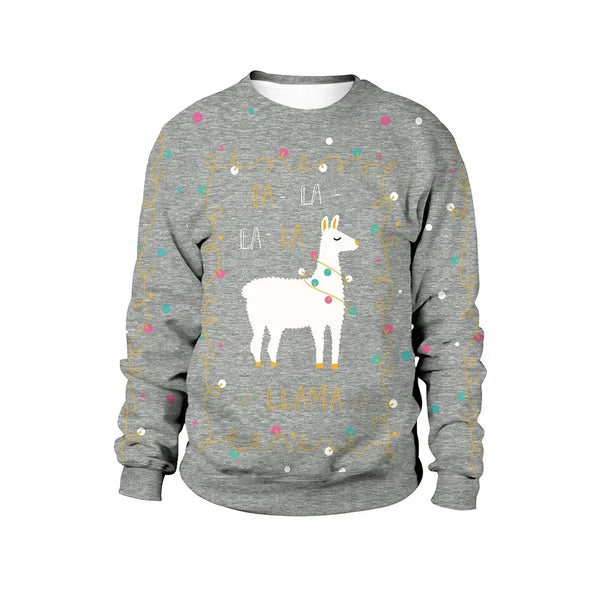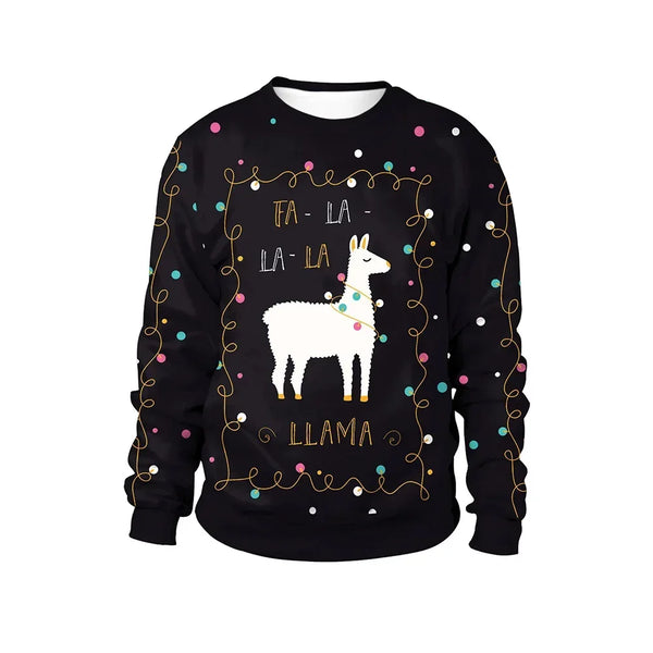 Men Women Llama Ugly Christmas Sweatshirt 3D Funny Print New Year Eve Xmas Sweater Couples Pullover Holiday Party Jumper Tops