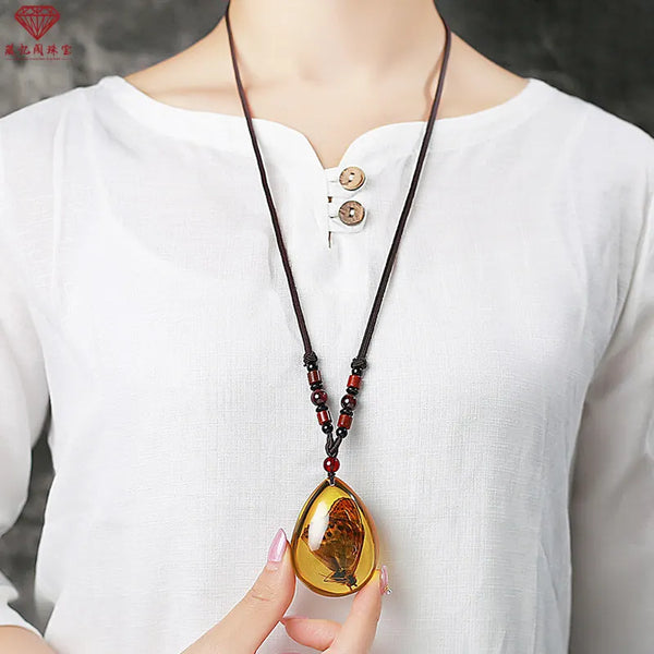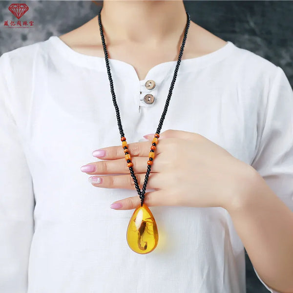 Natural Baltic Amber Butterfly Necklace Men Women Healing Gemstone Fine Jewelry Scorpion In Amber Pendant Sweater Chain Necklace