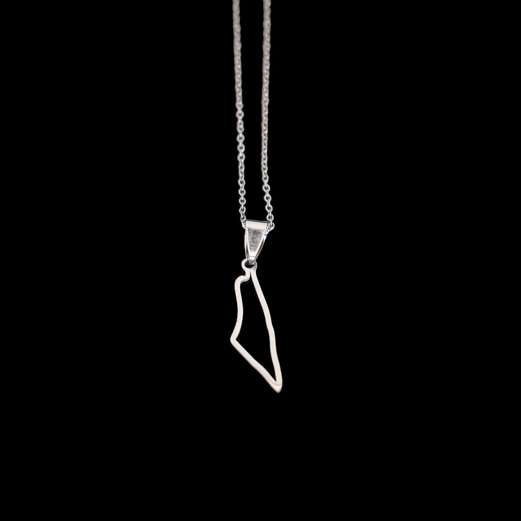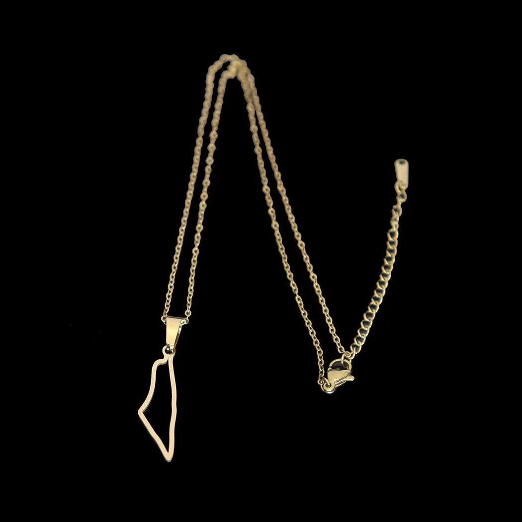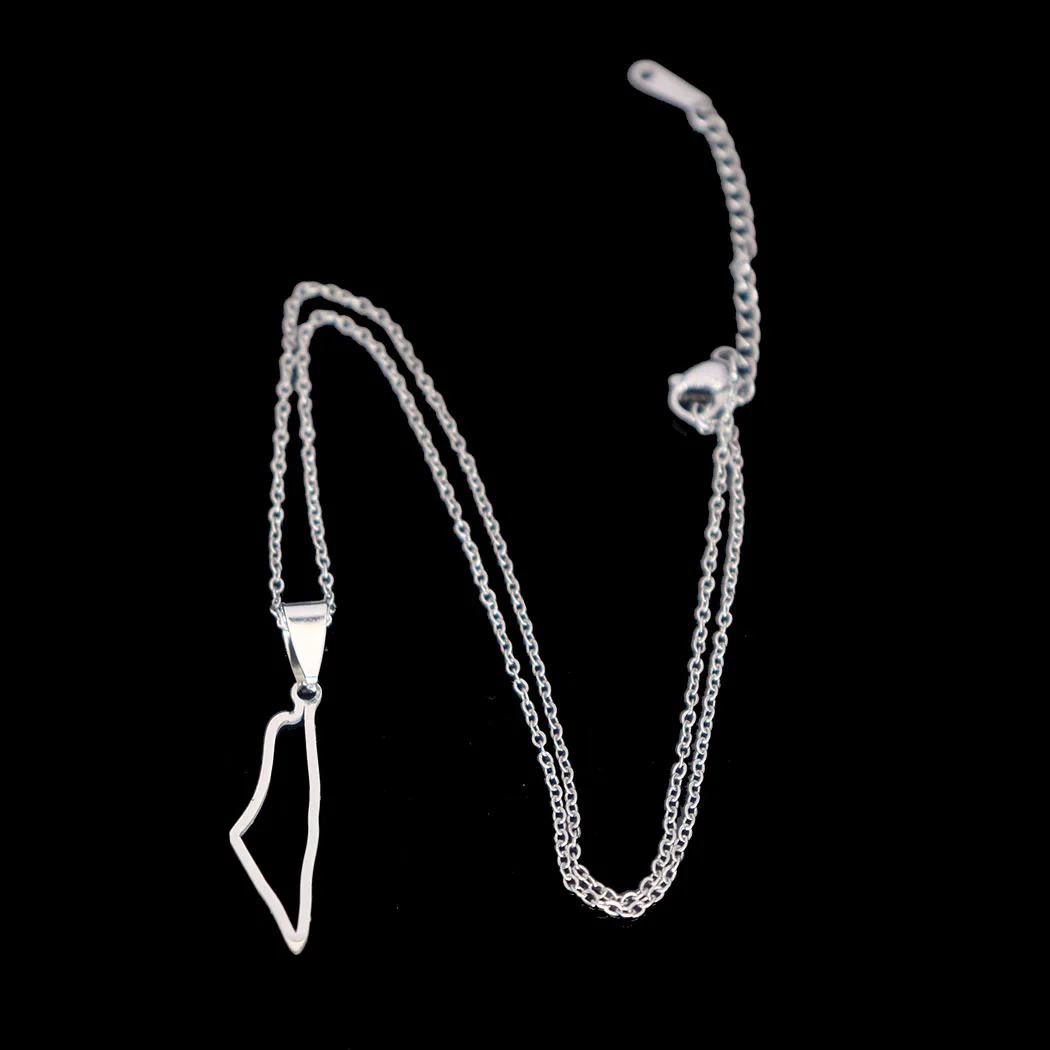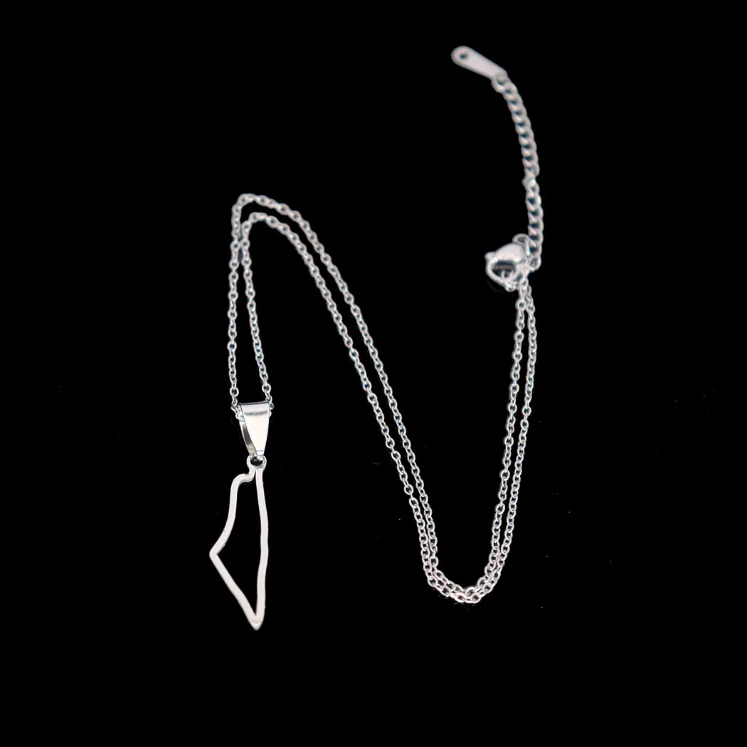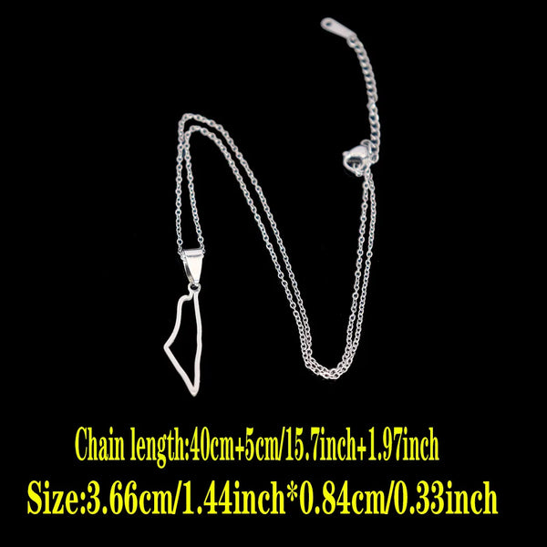 New fashionable stainless steel Israel map pendant necklace, simple and versatile, ethnic style map pendant collarbone chain for