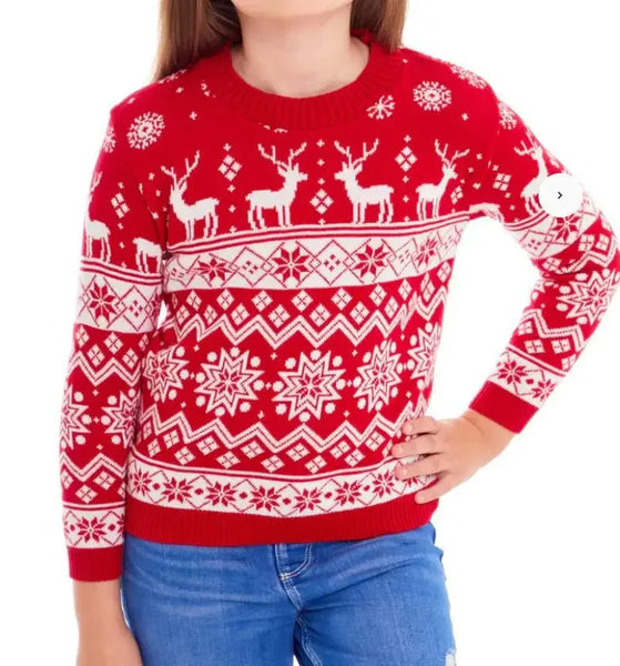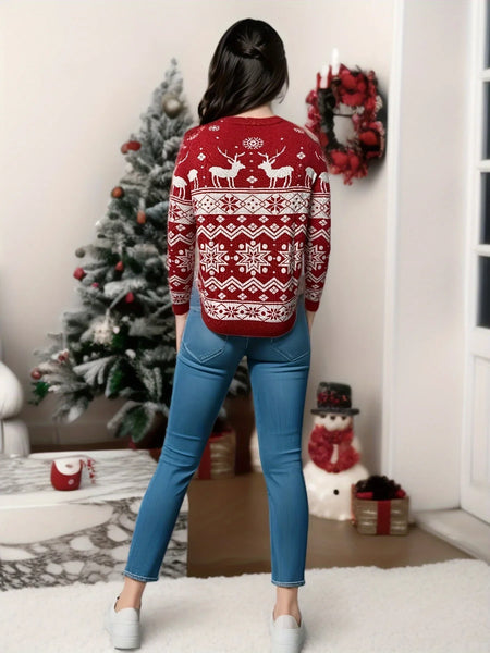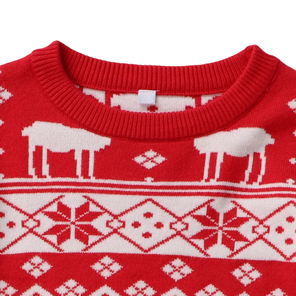 New Spring Autumn Knitted Pullover Top Long Sleeve Base Layer Round Neck Parent-Child Sweater Christmas Elements Pulover Top