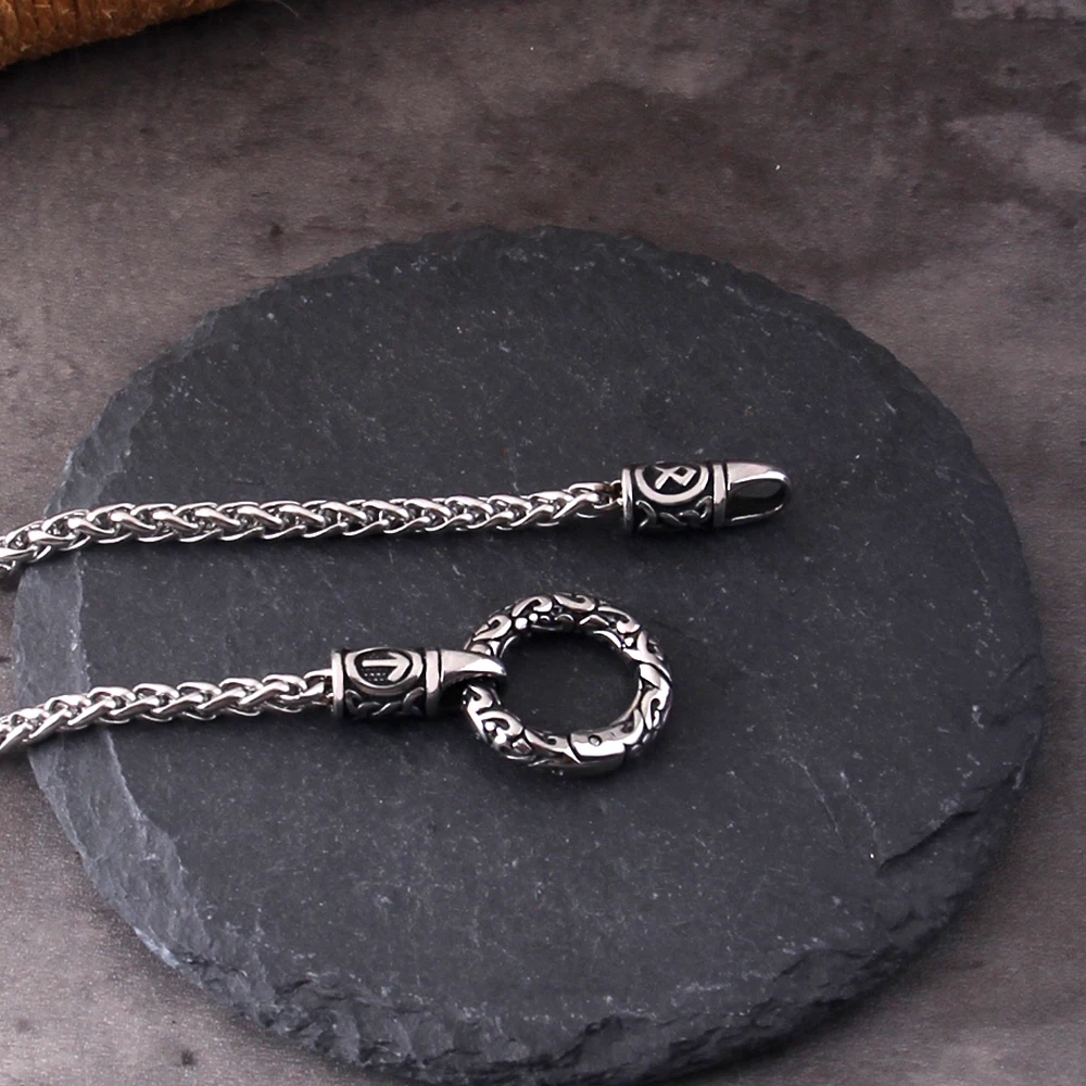 Name:Nordic viking rune with Open Round Clasp pendant necklace stainless steel chain with wood box