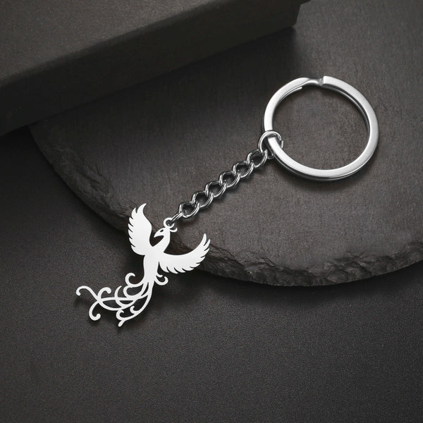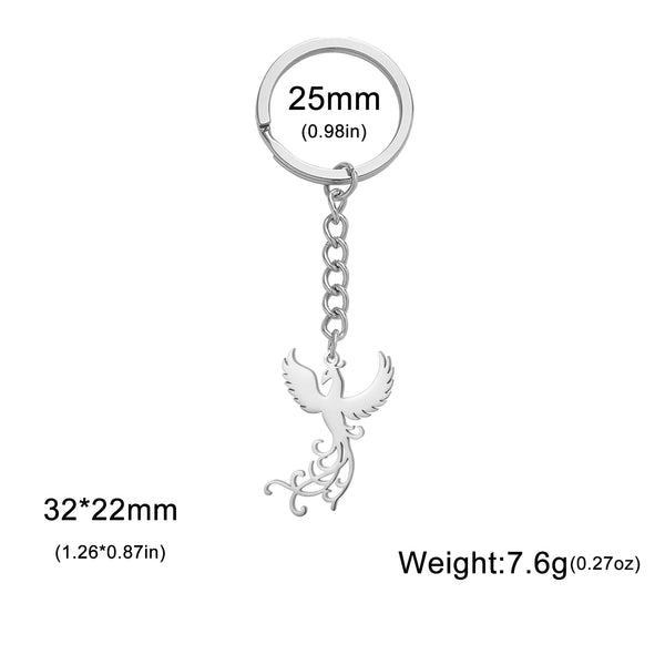 Phoenix Keychain Gift for Woman Men Key Chain Ring Reborn God Bird Supernatural Amulet Stainless Steel Pendant Design Jewelry
