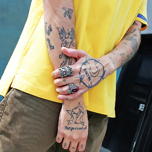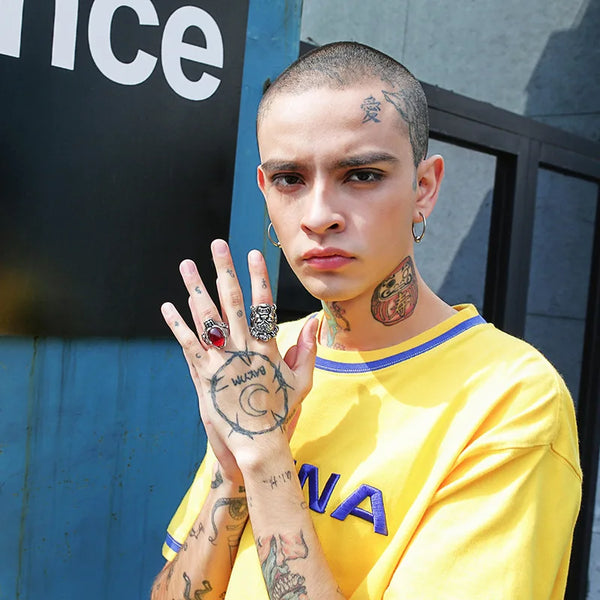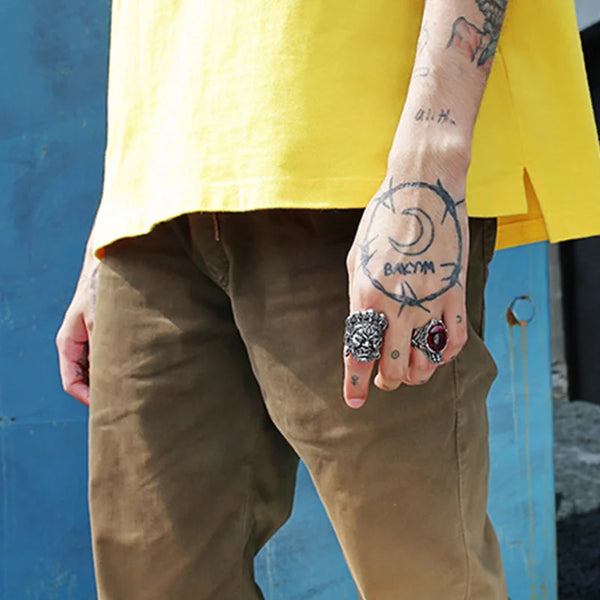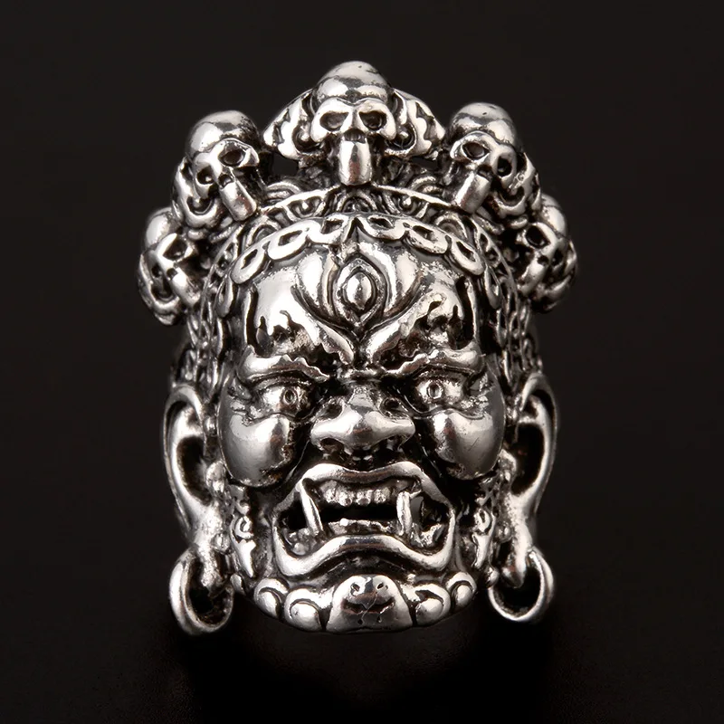 Retro Mahakala Large Ring For Men Street Punk Gothic Rock Hiphop Adjustable Open Ring Handmade Jewelry Biker Accessories Gift