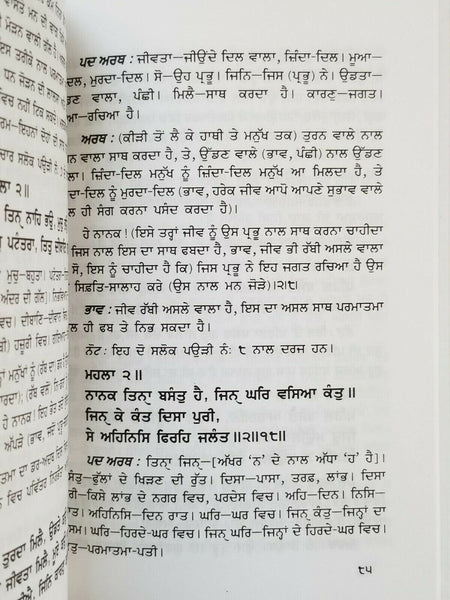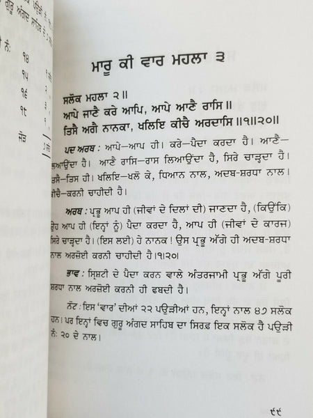 This Gutka sahib is translation of each Gurbani line into simple Punjabi (Gurmukhi) and makes it easier to grasp the actual meanings of Gurbani.