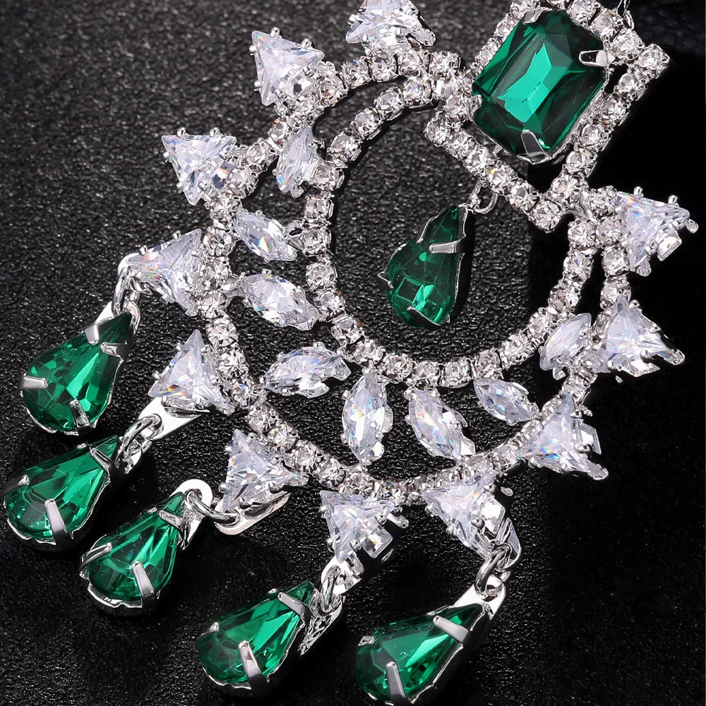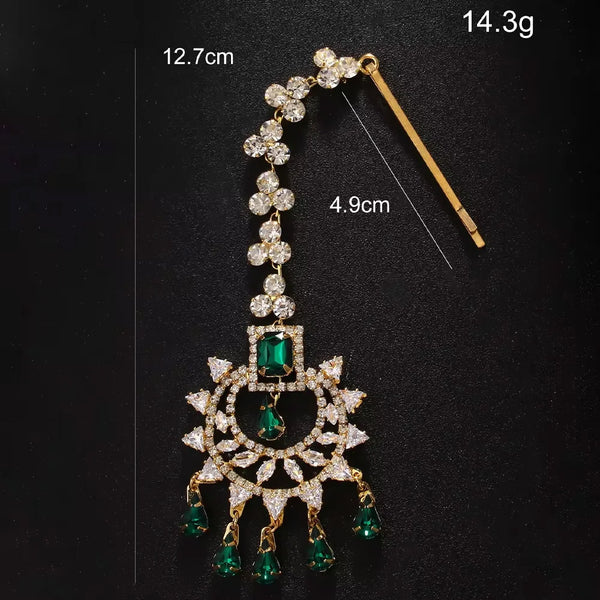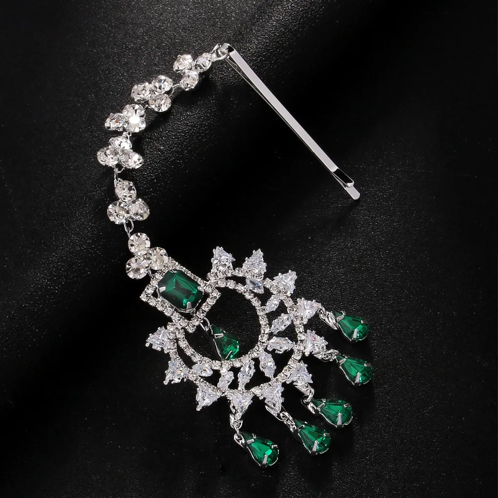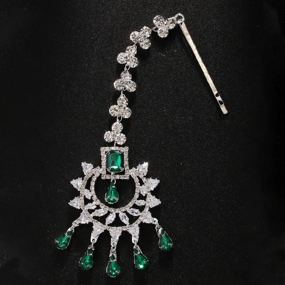 Stonefans Fashion Geometric Zircon Forehead Headpiece Indian Head Accessories Elegant Green Water Drop Hair Chain for Women