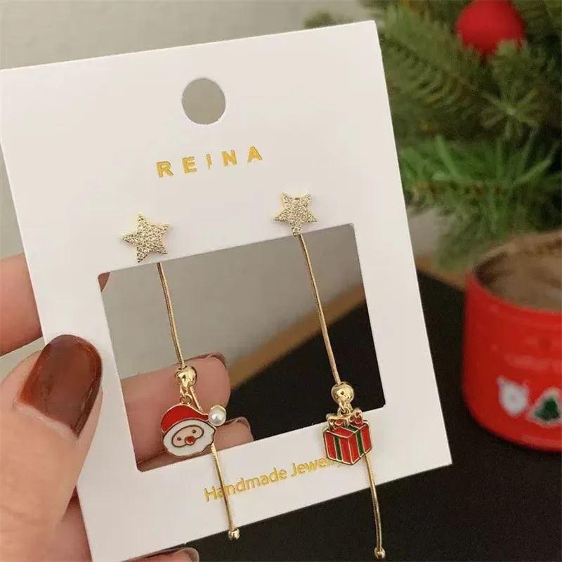 Christmas Tassel Earrings Women Movable Santa Claus Snowflake Asymmetrical Long Chain Pendant Earrings New Year Jewelry Gifts