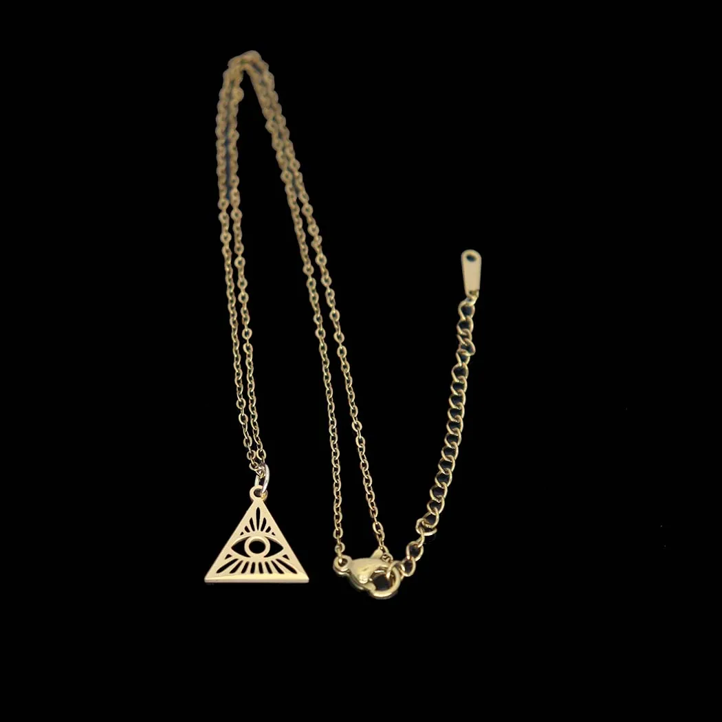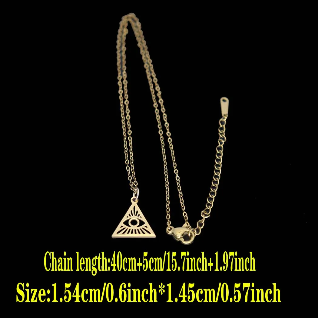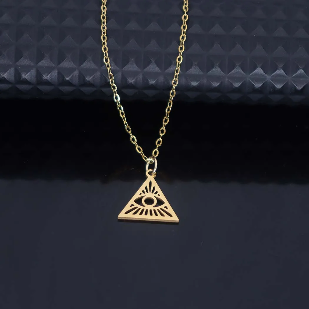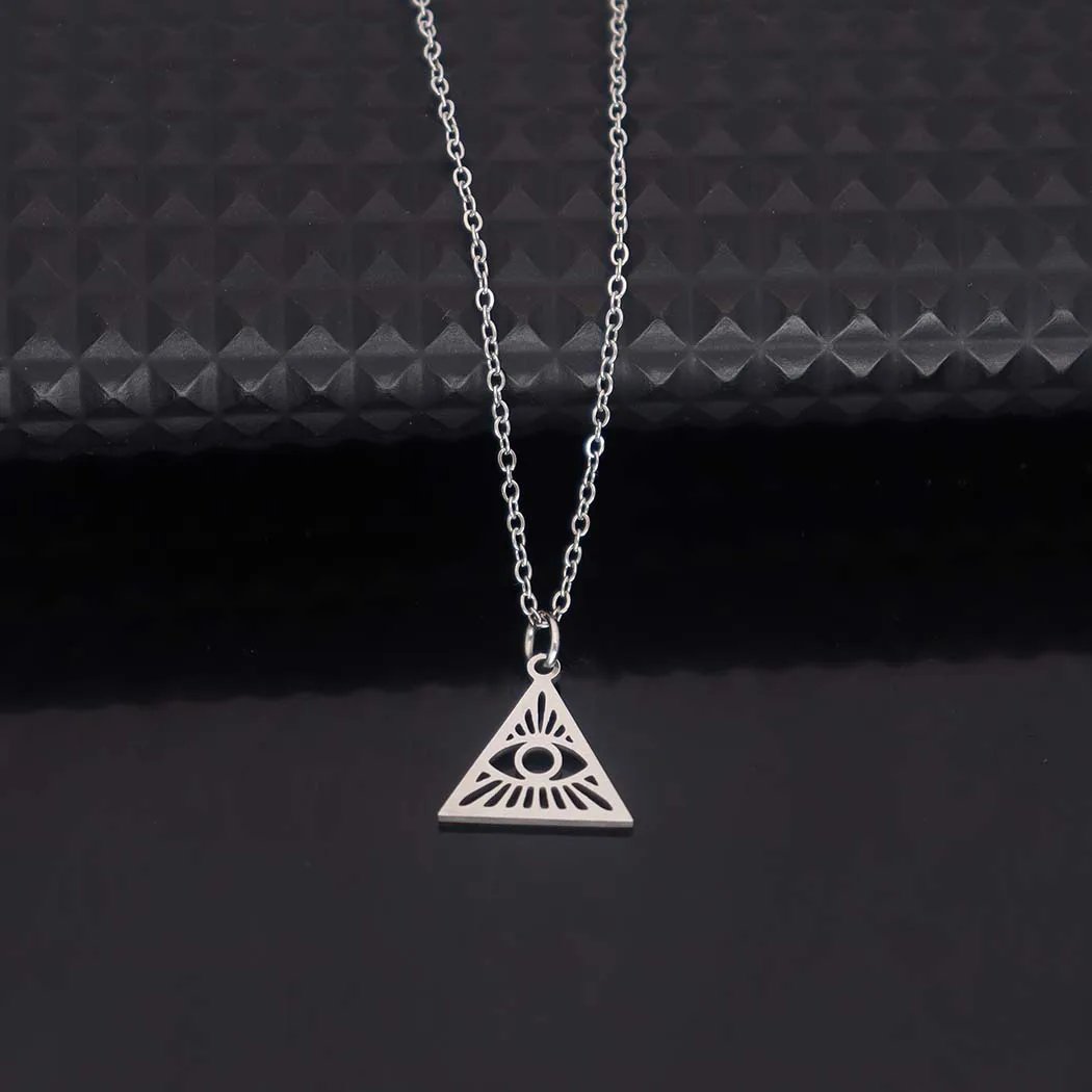 Stainless steel hollowed-out triangular devil's eye pendant necklace, square pendant collarbone chain women's accessories