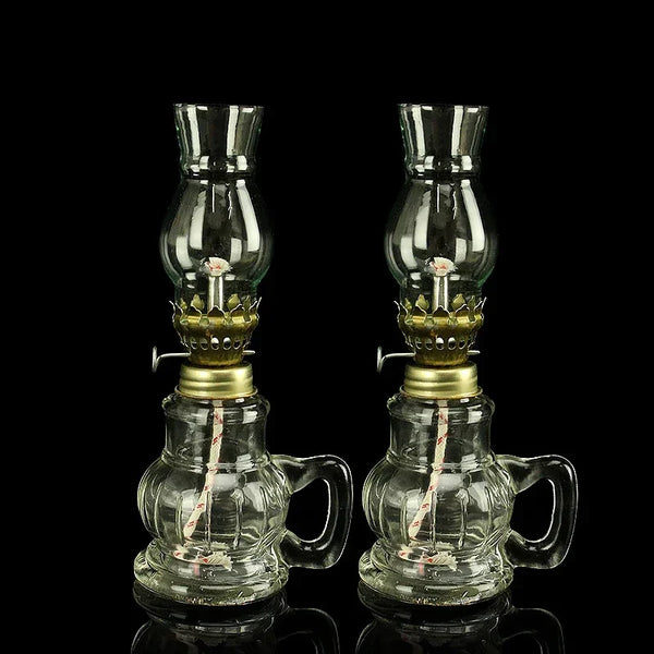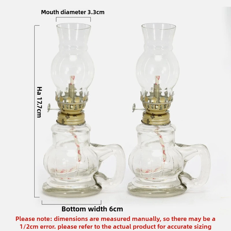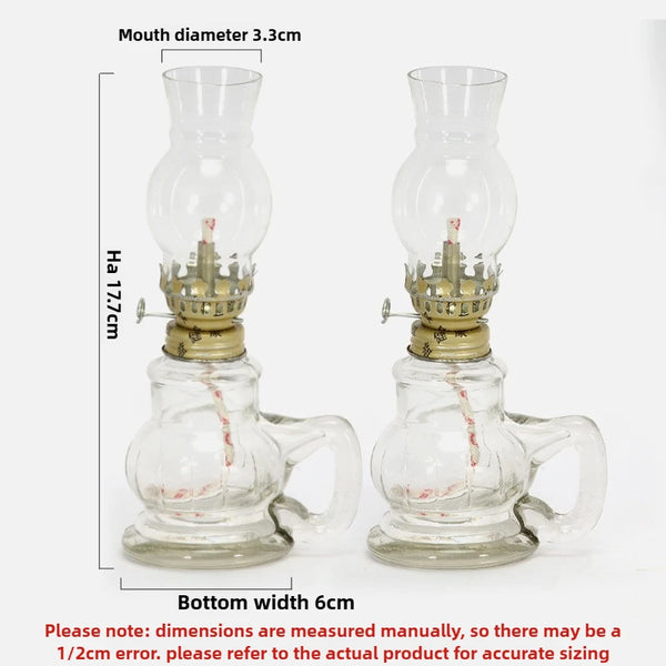 1 Retro Kerosene Candle Holder Windproof Oil Lamp with Glass Cover, Suitable for Emergency Lighting and Indoor Decoration