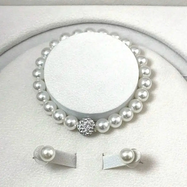 Name:3 PCS set Imitation Pearl Fireball Necklace Bracelet Earring Stud Jewelry Set