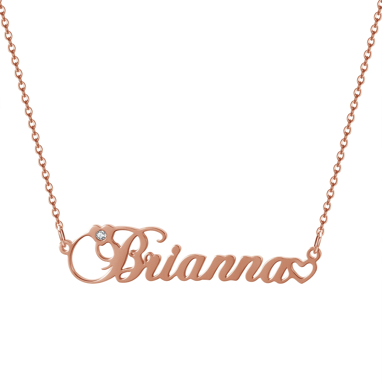 The nameplate is attached to a beautiful heart - shaped pendant. The heart shape is a classic symbol of love and affection, making it a perfect addition to a personalized necklace. The heart pendant can be plain or adorned with additional details. In this case, it features white diamonds, which enhance its beauty and elegance. The size of the heart pendant is carefully designed to be proportionate to the nameplate and the overall necklace. It typically measures around [length] cm in length and [width] cm in width, with a thickness of approximately [thickness] cm.