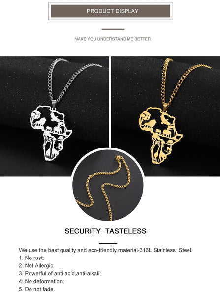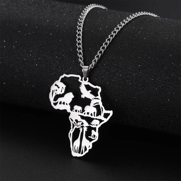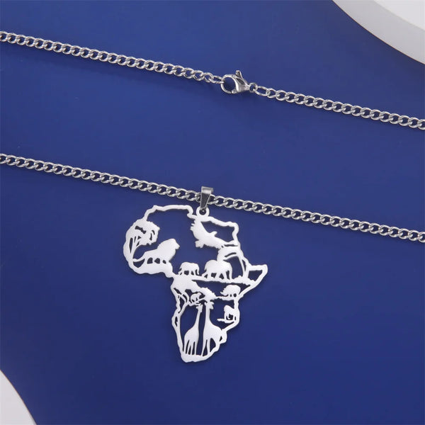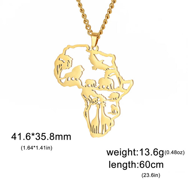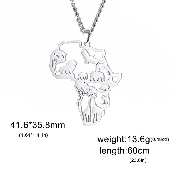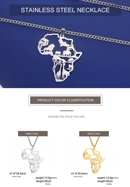 Product Name: My Shape Africa Map Lion Elephant Monkey Giraffe Pendants Necklaces Men Women Stainless Steel Animal Chain Necklace Jewelry Gifts