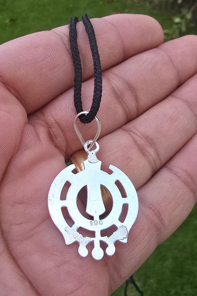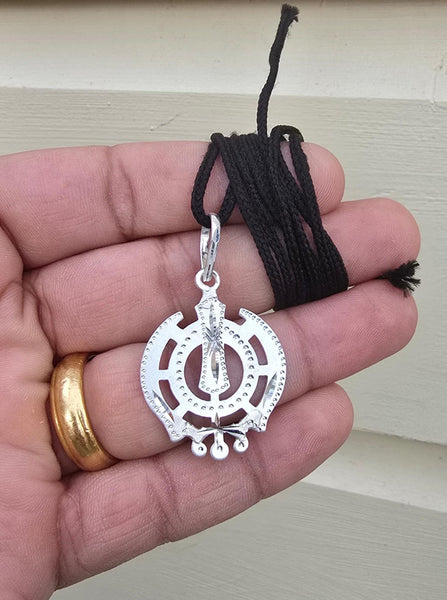 Sikh Khanda Pendant Chandi 925 Sterling Silver Necklace in Black Dori Singh Kaur Khalsa Handmade