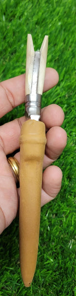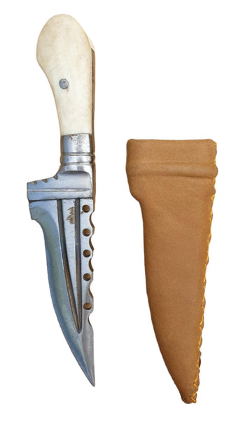 Handle is made of camel bone. Whole design is handmade and unique, customised by Onlinesikhstore.