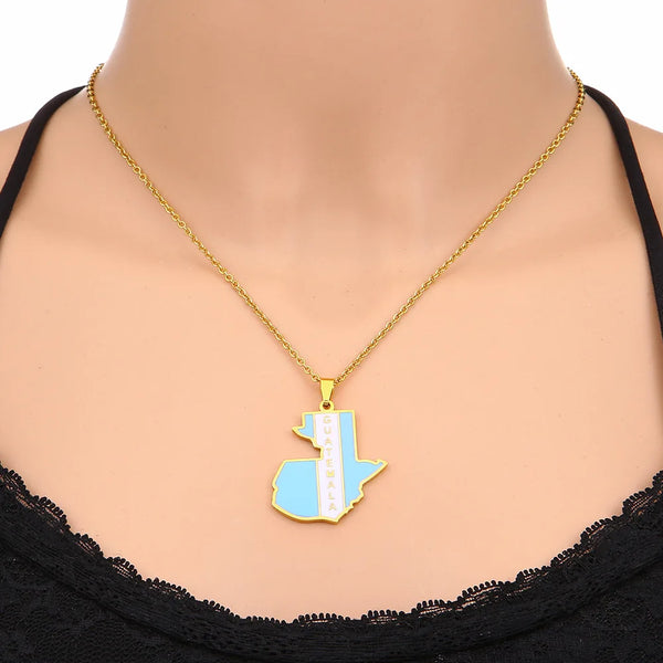 2024 New fashion stainless steel retro dripping Guatemala map necklace for women and men couples ethnic style accessories collar