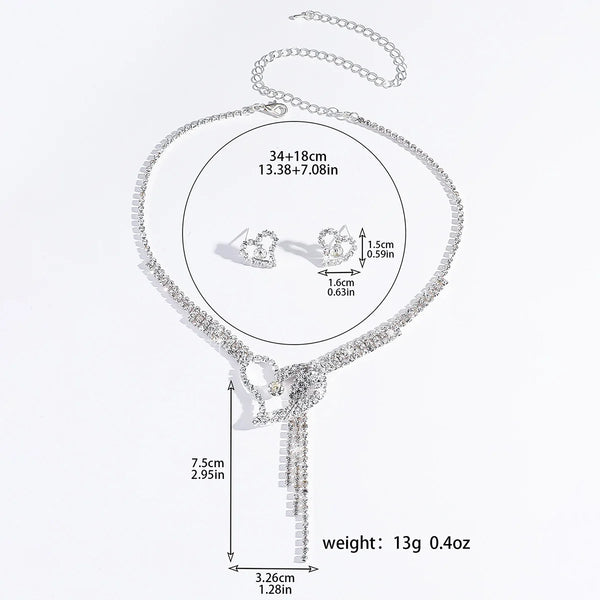 3PC women's fashionable rhinestone peach heart necklace earrings jewelry set, suitable for weddings, parties, and holiday gifts