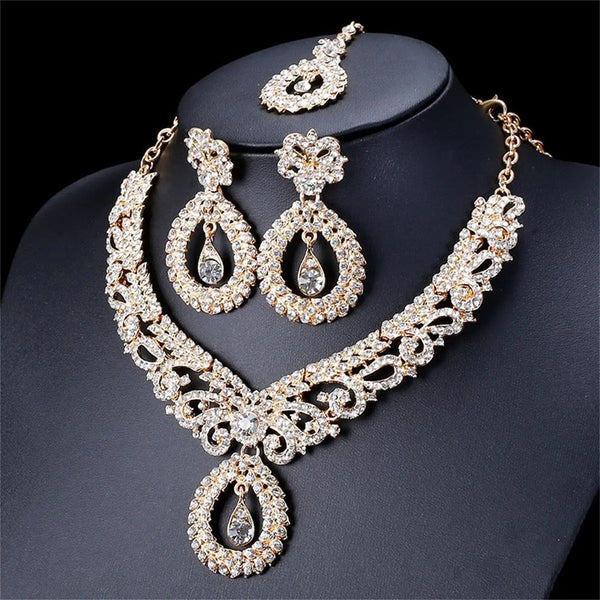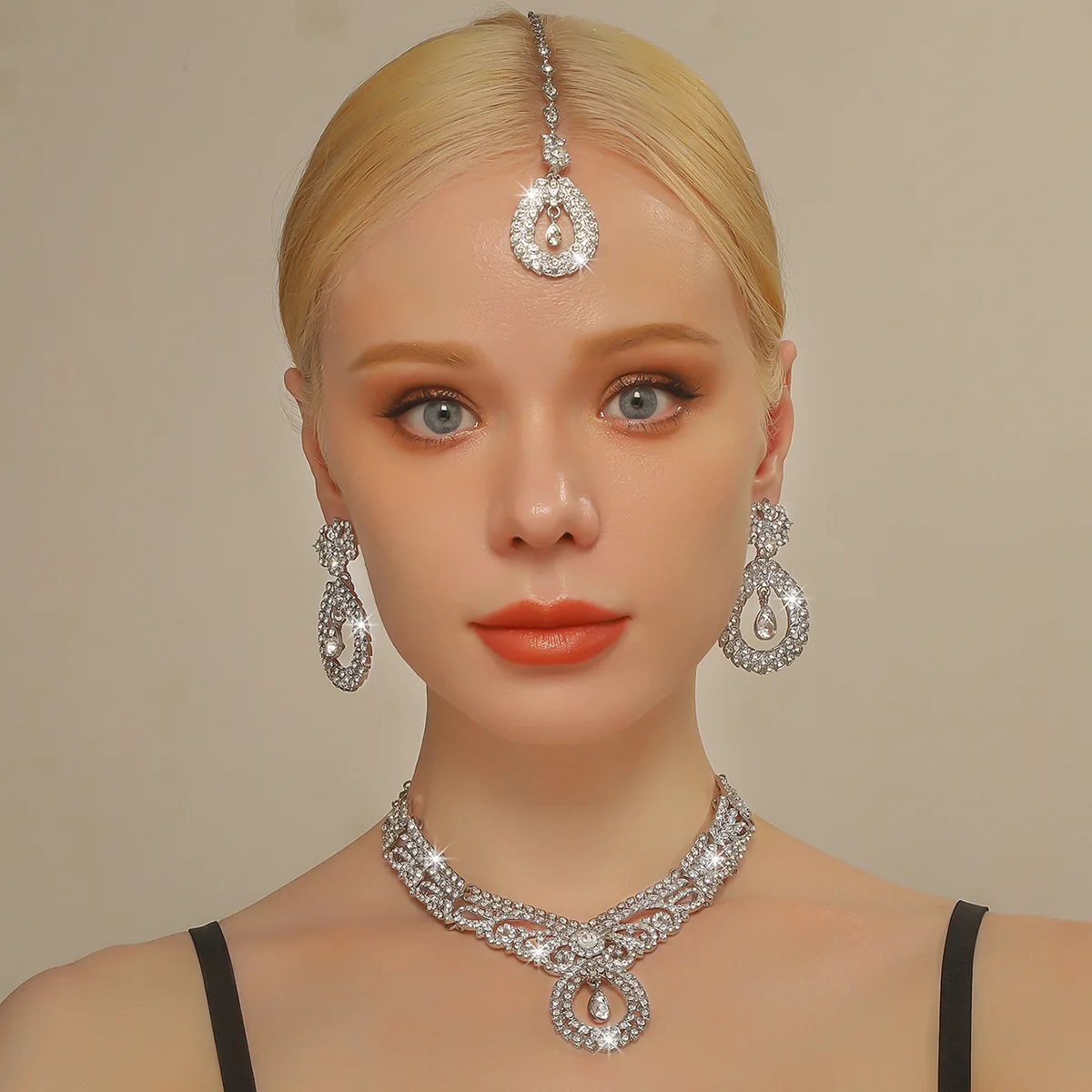 1.Quantity:1 set (1 Necklace+2 Earrings+1 headware)
