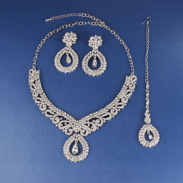 4PCS Women's Metal Jewelry Set Bollywood Jewelry Set Necklace Earrings Set Wedding Party Jewelry