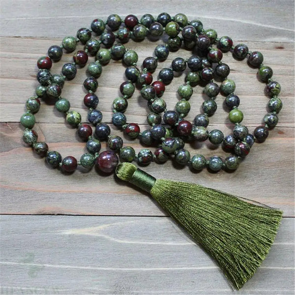 8mm Natural Dragon Blood Jasper 108 Beads Tassel Mala Necklace Religious Buddhism Unisex Wrist Blessing