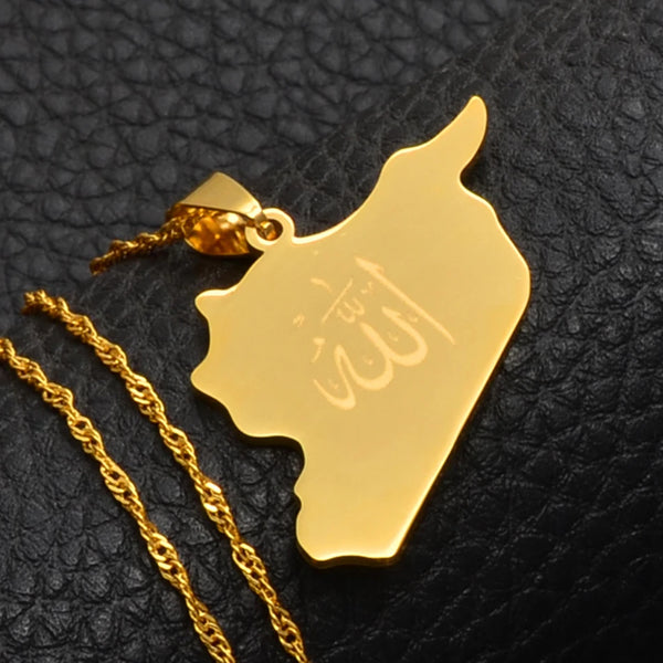 Anniyo Syria Map With Allah Pendant Necklaces for Women Girls Syrians Jewelry @020121