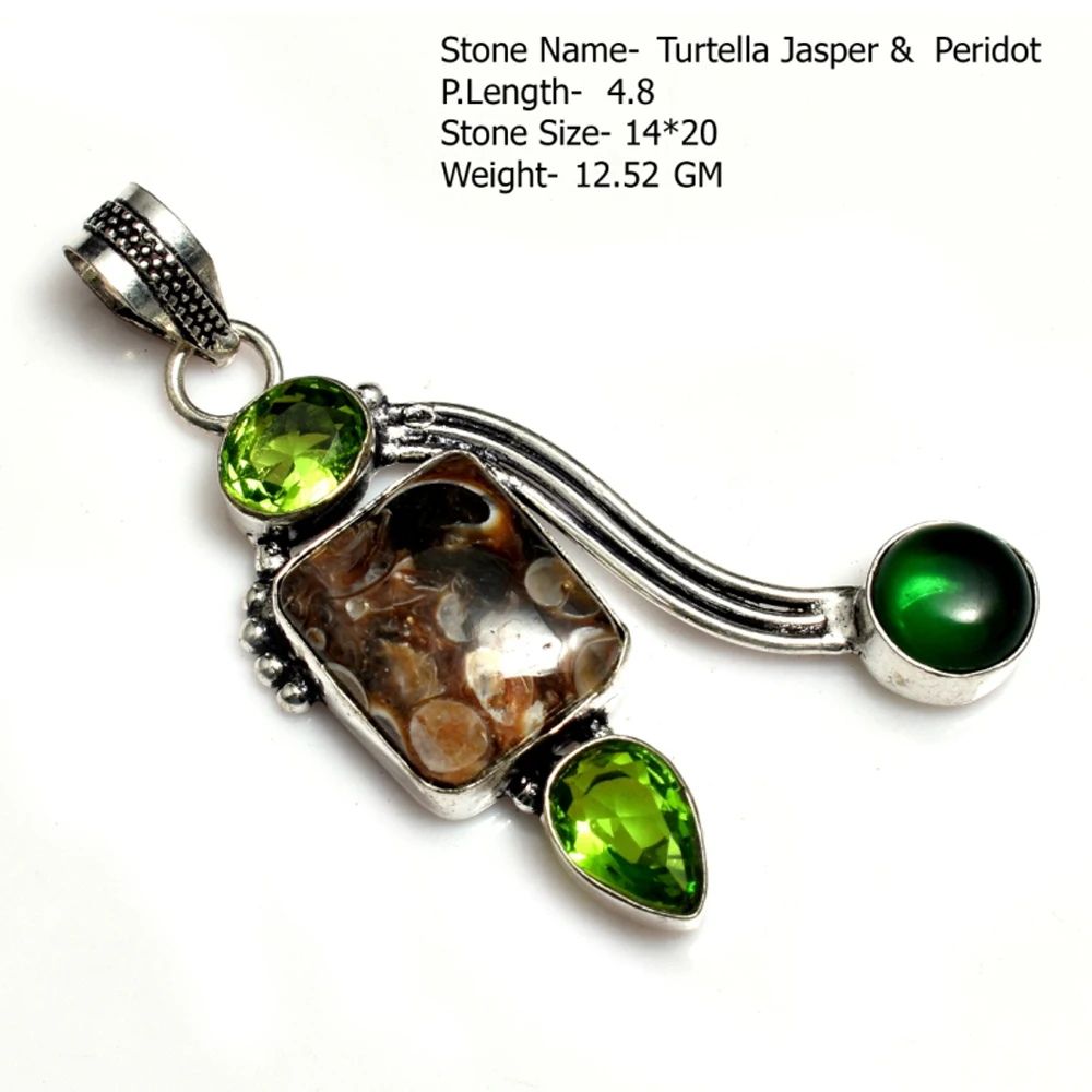 Genuine Labradorite Jasper Agate Turquoise Pendant