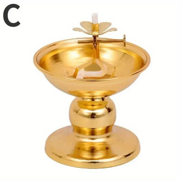 Ghee Lamp Holder Oil Lamp Dish Dimmable Buddhist Alloy Butter Lamp Holder for Living Room Home Desktop Decoration Ornament