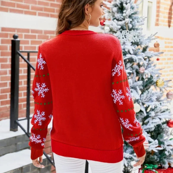 Large Size 3XL Christmas Santa Print Women's Knit Sweater Full Sleeve Loose Knitwear Warm Soft Jumpers Female Xmas Look Pullover