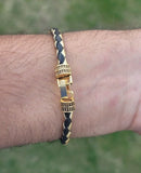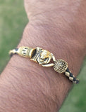 Narsimha bracelet Lion God kara Hindu Good Luck Evil Eye Protection bangle - Black and Golden colour Faux Leather Bracelet - Vintage Affect